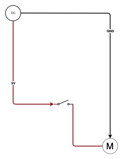 Looking at the internals the circuit is as simple as it comes with only 2 wires, 5V (RED WIRE) and GROUND (BLACK/WHITE WIRE). The 5V wire runs to a post on the switch, the other post on the switch runs to the Fans motor. The GROUND wire runs directly to the motor. When the switch is in the disconnected state the circuit is broken and when it is connected the circuit is live: